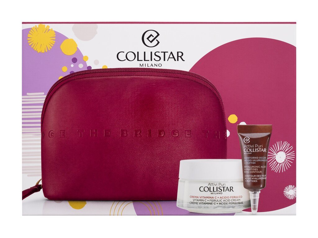 Collistar Pure Actives denní pleťový krém Attivi Puri Vitamin C Ferulic Acid Cream 50 ml + oční krém Hyaluronic Acid Peptides Eye Contour 5 ml + kosmetická taštička The Bridge