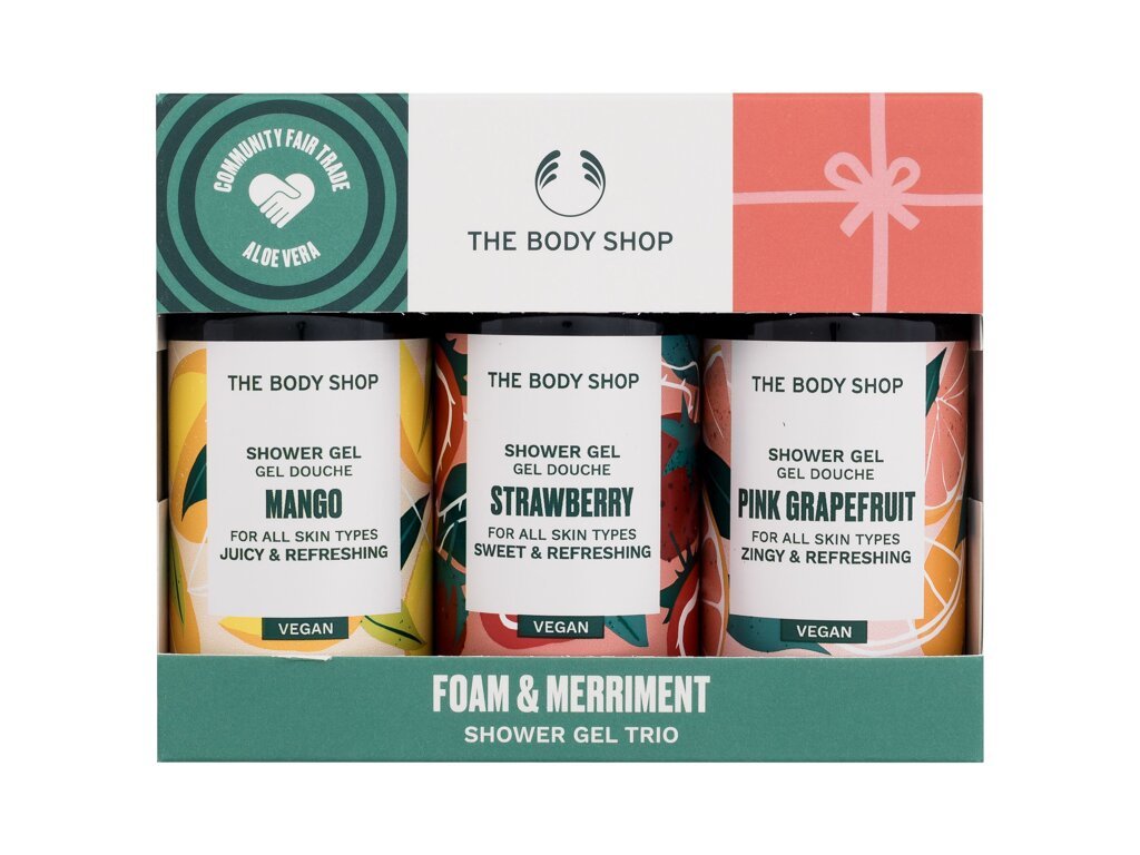 The Body Shop Foam & Merriment sprchový gel Mango 60 ml + sprchový gel Strawberry 60 ml + sprchový gel Pink Grapefruit 60 ml