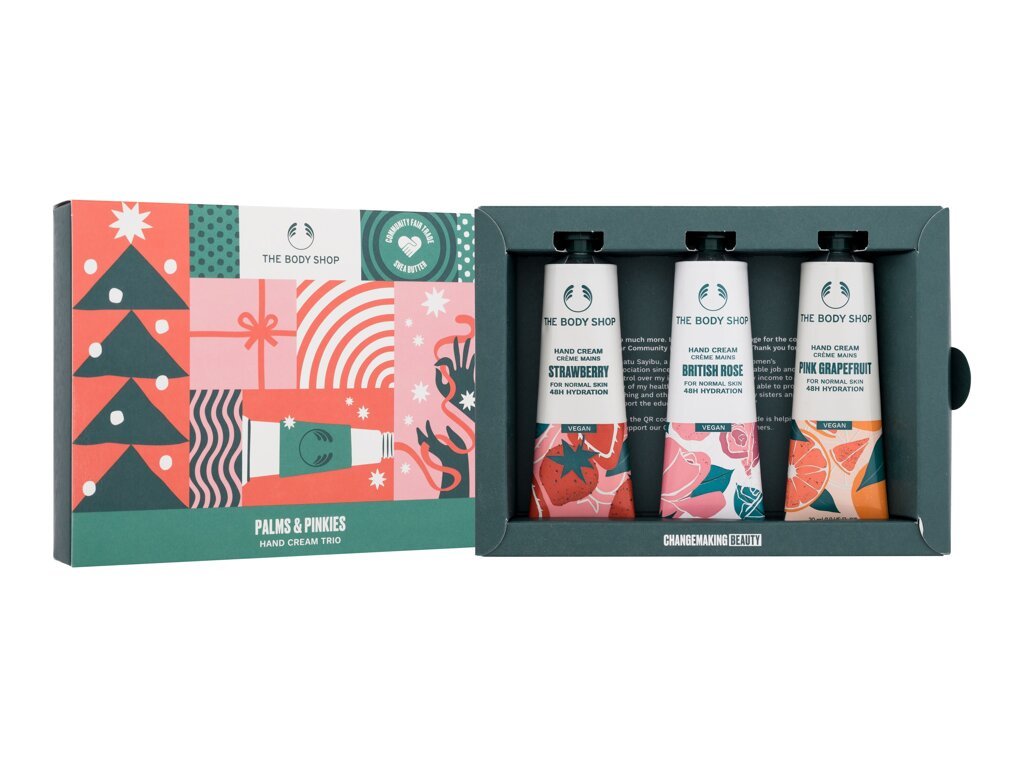 The Body Shop Palms & Pinkies krém na ruce Strawberry 30 ml + krém na ruce British Rose 30ml + krém na ruce Pink Grapefruit 30 ml