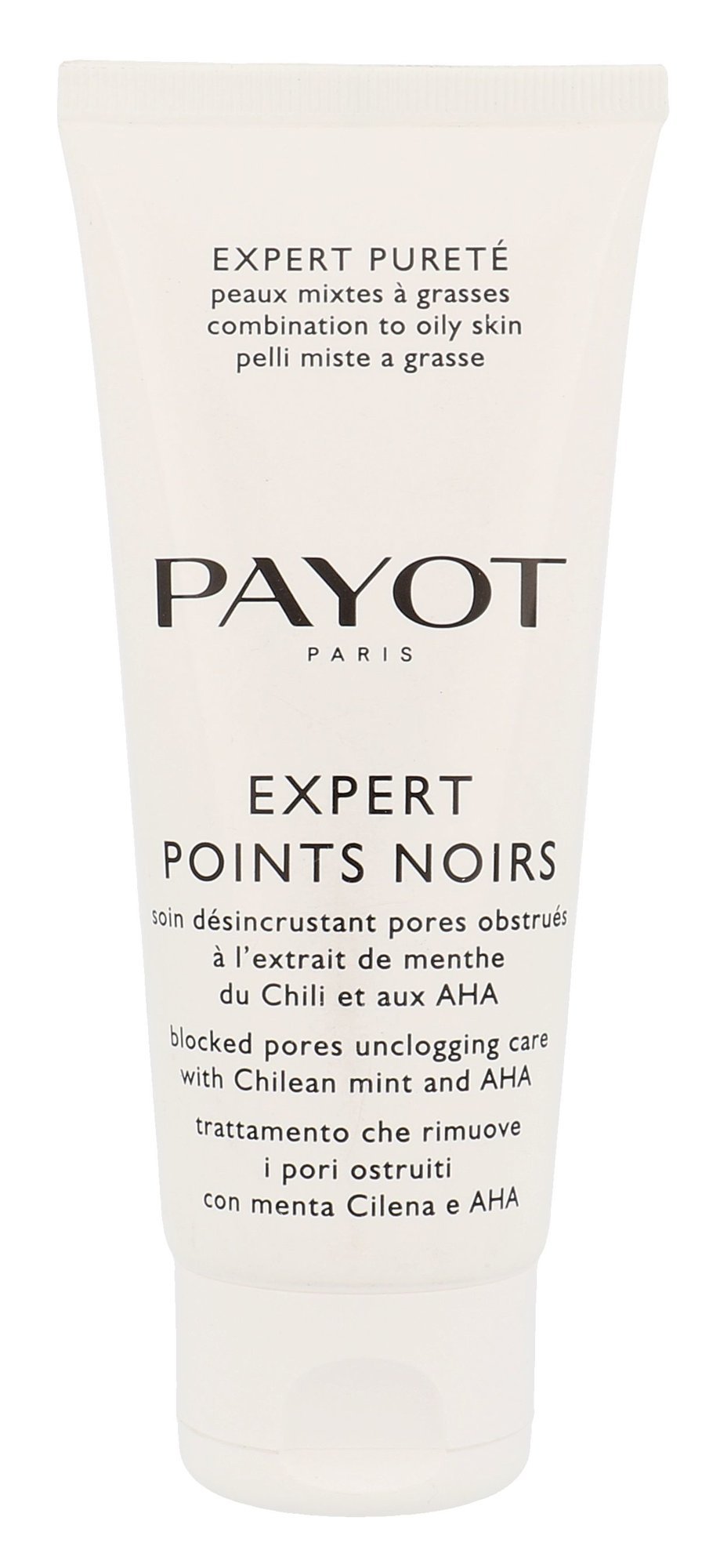 **Péče na čištění pórů Payot Pate Grise Expert Points Noirs Blocked Pores Unclogging Care.** Přípravek ve formě gel krému účinně čistí zanesené póry a černé tečky. Na pleť působí ve třech fázích, nejprve pleť hloubkově vyčistí, poté vyčistí ucpané póry a nakonec je stáhne. Přípravek je vhodný na normální až mastnou pleť. S péčí Pate Grise Expert Points Noirs bude Vaše pleť jemná a hladká bez viditelných nedokonalostí. **Použití:** Aplikujte ráno a večer buď na celou pleť nebo na problematická místa. Vyhněte se kontaktu s očima. Poté použijte Váš oblíbený pleťový krém.