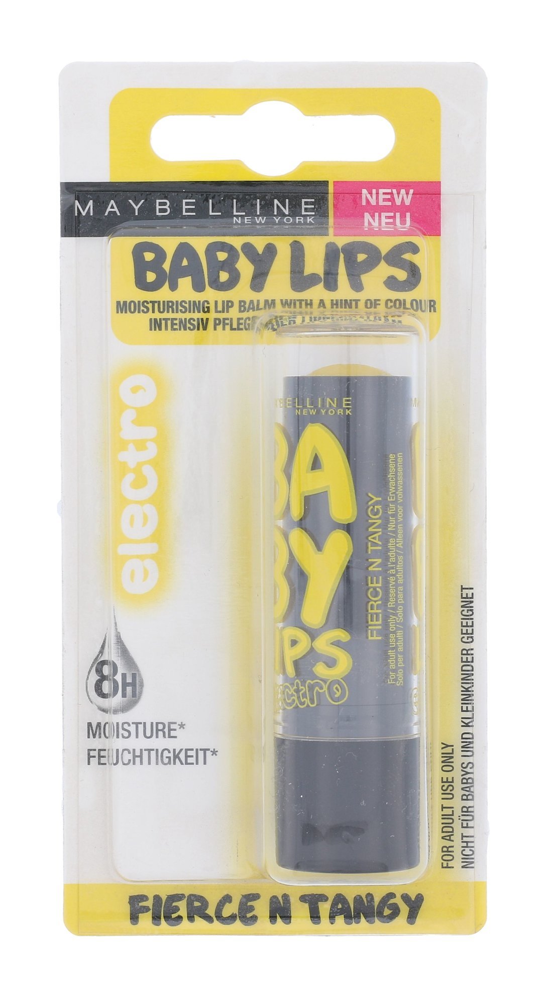 **Balzám na rty Maybelline Baby Lips Electro**. Balzám **Maybelline Baby Lips Elelectro** poskytuje rtům hloubkovou hydrataci a ochranu. Obsahuje ochranný faktor SPF 20, který chrání rty před škodlivým slunečním zářením. Jemná textura se snadno nanáší a nezanechává mastný pocit. Výsledkem jsou jemné a hydratované rty s originální barevným nádechem až po dobu 8 hodin. **Použití**: Aplikujte na rty. Opakujte dle potřeby.