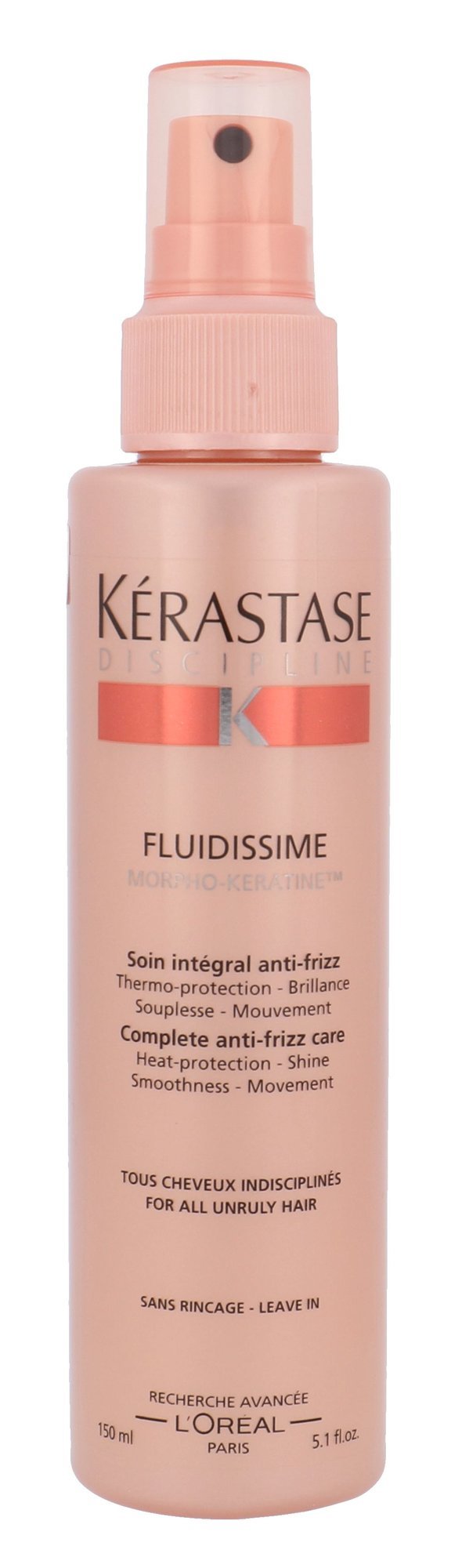 Vlasový sprej pro uhlazení a lesk vlasů **Kerastase Discipline Fluidissime Anti-Frizz Care Spray**. Sprej Kerastase Discipline Fluidissime Anti-Frizz Care Spray chrání vlasy před poškozením. Zlepšuje jejich lesk a pružnost. Bohaté složení vlasy hloubkově vyživuje a hydratuje. Po použití budou vlasy oslnivě lesklé, silné a pružné. **Použití**: Aplikujte na vlasy před foukáním. Upravte jako obvykle. Neoplachujte.