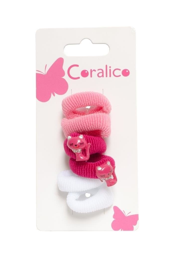 Zestaw 6 frotek jasny róż, ciemny róż, biel. Różowe frotki z motywem kotka z srebrnymi dodatkami. číst celé