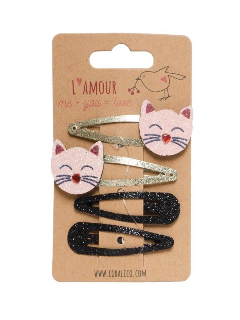 Spinki z brokatowym kotkiem 4szt