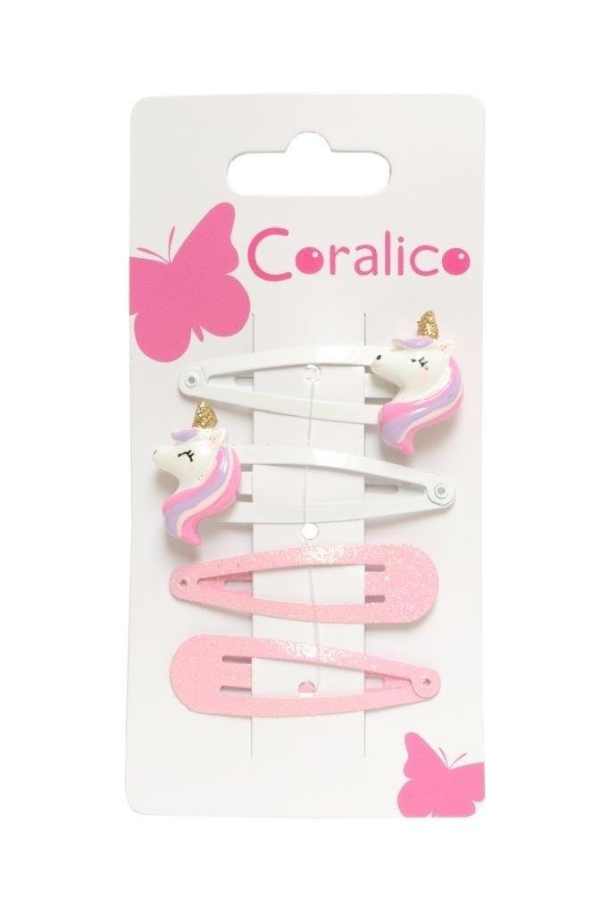 Zestaw 4 spinek do włosów, dwie spinki z motywem jednorożca w kolorze białym i dwie spinki w kolorze różowym. číst celé