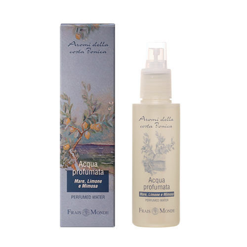 Parfémovaná voda **Frais Monde Seaspray, Lemon And Mimosa Perfumed Water**. Parfémovaná voda Seaspray, Lemon and Mimosa dodává tělu svěžest a nádhernou vůni mořského vánku, citrusů a mimózy. Ideální pro použití po osprchování. Neodolatelná vůně Frais Monde Seaspray, Lemon and Mimosa je plná intenzivních tónů. Osvěžující koktejl citrusů je obohacen o mimózu, která usměrňuje vůni. Nádherná letní kombinace Vás zahalí do svěžích tónů mořského vánku ve spojení s energizujícími citrusy a květinami.
