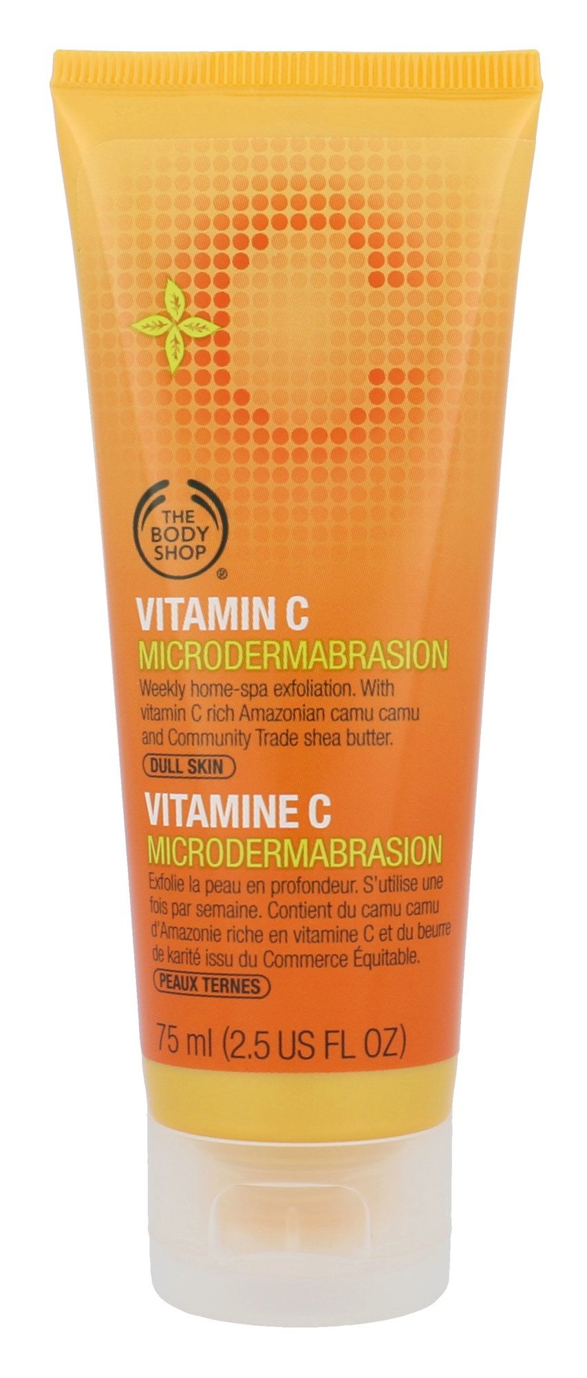 Rozjasňující pleťový peeling **The Body Shop Vitamin C Microdermabrasion**. Peeling The Body Shop Vitamin C Microdermabrasion zanechává pleť rozjasněnou, svěží a hebkou. **Použití:** Aplikujte na navlhčený obličej. Poté opláchněte. číst celé