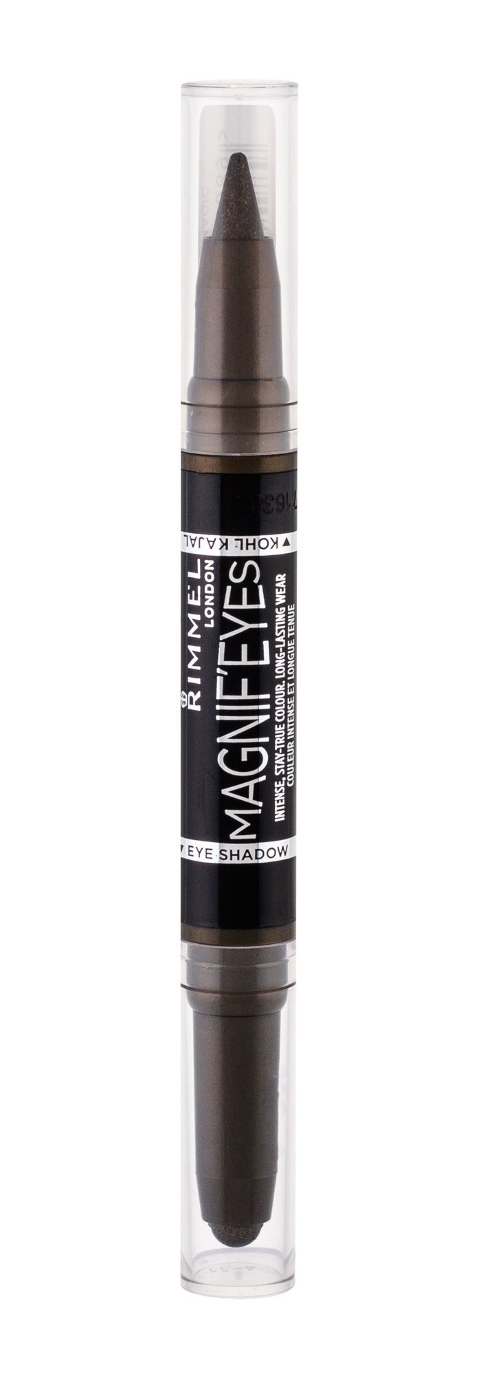 Oční stíny a kajalová tužka 2v1** Rimmel London Magnif Eyes**. Oční stíny a kajalová tužka 2v1 mají krémovou konzistenci s vysokou pigmentací, která má dlouhotrvající výdrž trvající až 24 hodin. Jednotlivé odstíny očního stínu a kajalové tužky s jemným shimmerem k sobě dokonale ladí, čímž umožní vytvořit dokonalé líčení očí během okamžiku. Unikátní složení nezalézá do vrásek. Praktické balení 2v1 je praktické na cesty. S očními stíny a kajalovou tužkou 2v1 z řady Magnif Eyes bude Vaše líčení dokonalé po celý den. **Poznámka:** Vyobrazený odstín může být spíše orientační, záleží na nastavení barev Vašeho monitoru.