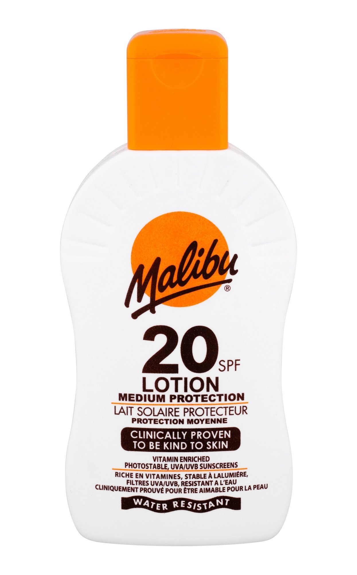 Mléko na opalování **Malibu Lotion SPF20**. Mléko Malibu Lotion SPF20 poskytuje pokožce střední ochranu před slunečním zářením. Mléko pokožku hydratuje, zvláčňuje, vyživuje a zabraňuje podráždění. Voděodolné složení. Použití: Aplikujte na suchou a čistou pokožku. číst celé