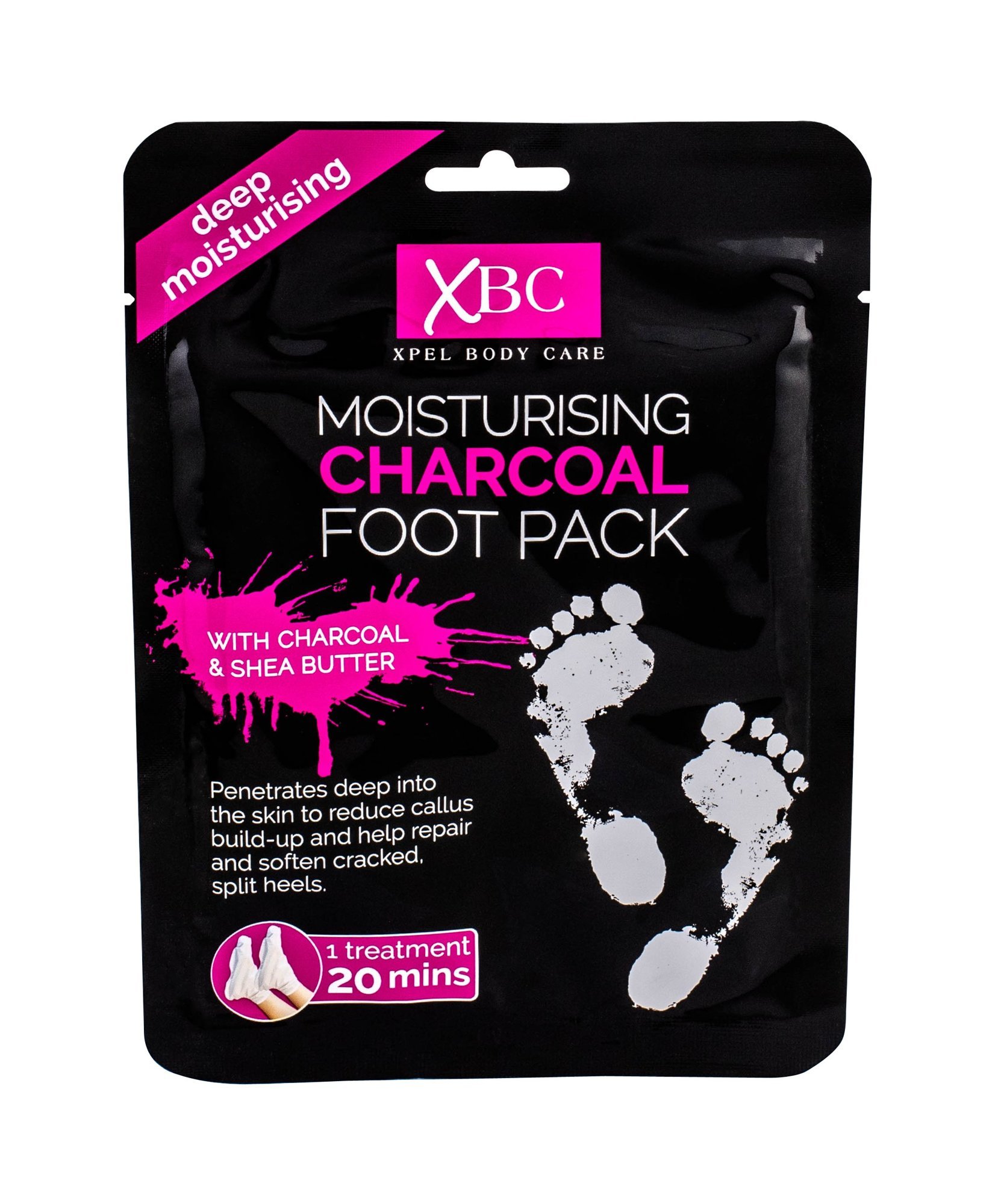 Hydratační ponožky s aktivním uhlím** Xpel Moisturising Charcoal Foot Pack**. Xpel Moisturising Charcoal Foot Pack pro hloubkovou hydrataci Vašich chodidel. Bohaté složení obsahuje uhlí, levanduli, extrakt z limetky a pomeranče, které pomáhají pokožku dokonale hydratovat a vyživovat. Snižují tvorbu mozolů. Zjemňují hrubé rozpraskané paty. Po použití bude Vaše pokožka dlouhodobě vláčná, jemná a hebká. **Použití**: Ponožky používejte na čisté a suché nohy 2-3x týdně. Nechte působit 15-20 minut.