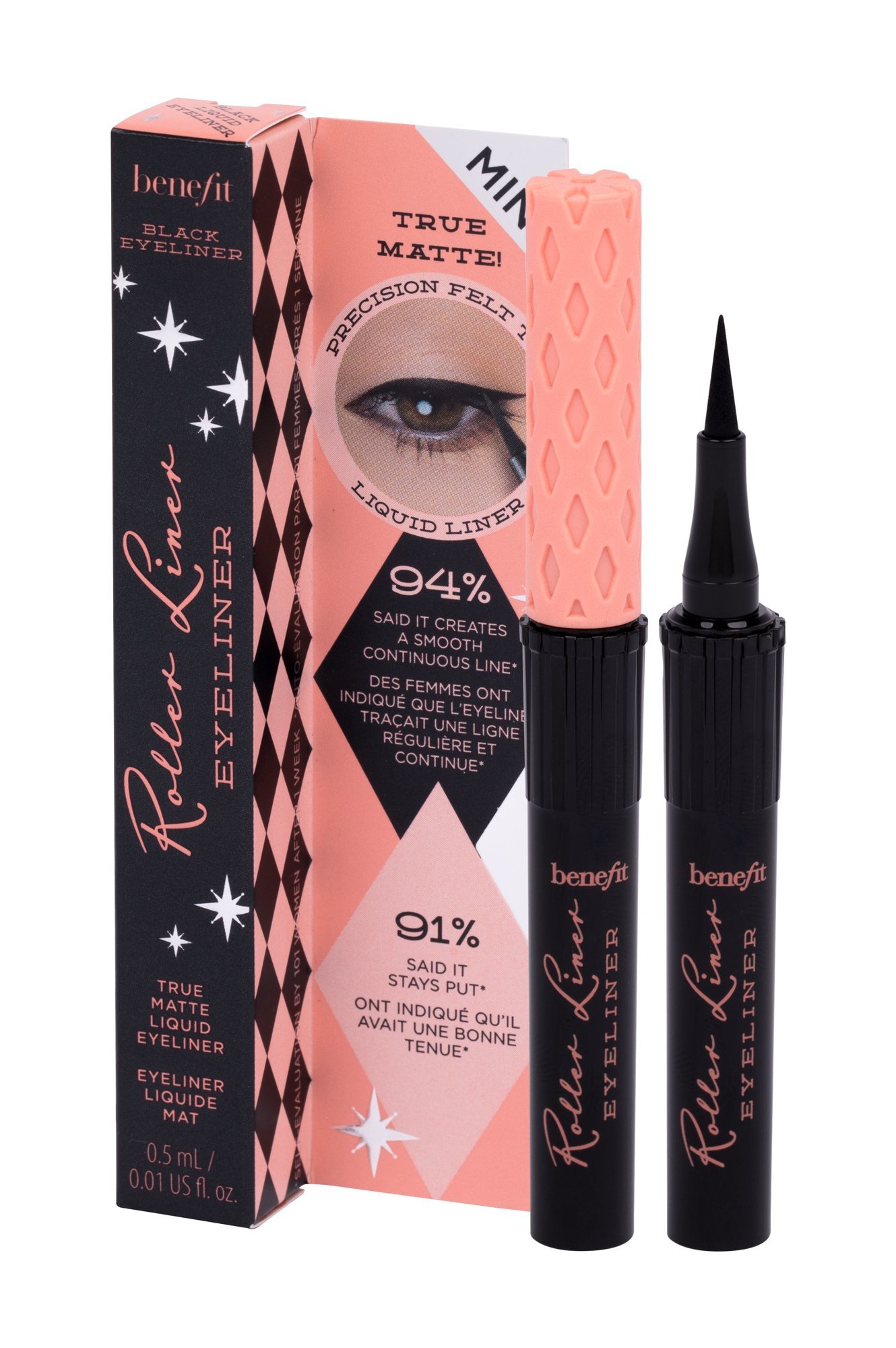 **Benefit Roller Liner True Matte** je tekutá oční linka v matném provedení, se kterou snadno vytvoříte precizní linku s dlouhou výdrží. ### Co vám oční linka Roller Liner True Matte může nabídnout? * přirozené matné provedení, * precizní hrot pro snadnou aplikaci, * rychle zasychá, neloupe se a nerozmazává, * má voděodolné složení, * výdrž 24 hodin, * dostupná i v mini balení. ### Jakým způsobem oční linku používat? Nakreslete linku podél linie řas od vnitřního koutku směrem k vnějšímu. *Zobrazení odstínu závisí na nastavení barev vašeho monitoru. Skutečná barva se může nepatrně lišit.*