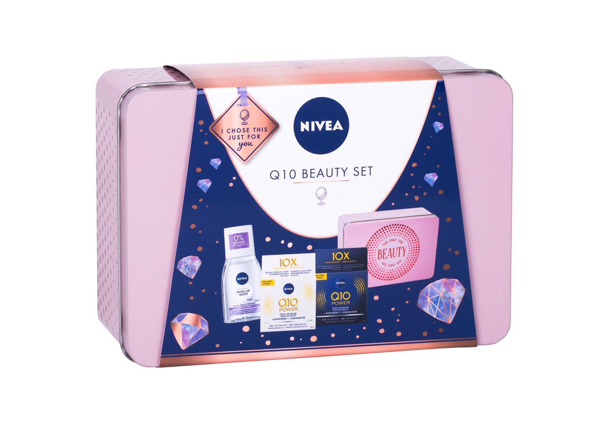 Nivea Q10 Power denní pleťová péče SPF15 + noční pleťová péče 50 ml + micelární voda MicellAIR 100 ml + plechová dóza