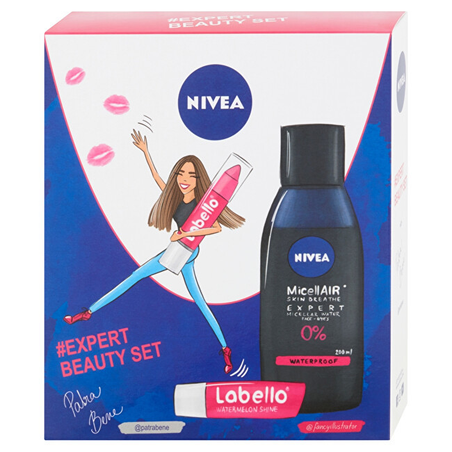 **Nivea** vám nyní nabízí skvělé produkty pro čištění pleti a zkrášlení rtů v dárkové kazetě **MicellAIR**. ### Zkrášlete svou pleť a rty s produkty Nivea! **dvoufázová micelární voda MicellAIR Expert Waterproof 200 ml** Dvoufázová micelární voda **Nivea MicellAIR Expert Waterproof** díky komplexu MicellAIR, výtažkům z černého čaje a suchým olejům dokonale odstraní voděodolný makeup z tváře a očí, přitom je šetrný k pleti. Nezanechává mastný film. Neobsahuje parfemace. Vhodná pro všechny typy pleti. **Použití:** Před použitím důkladně protřepejte. Aplikujte na vatový tampon. Jemnými pohyby setřete make-up z pleti a očí. Nemusíte oplachovat. **balzám na rty Labello Hot Pink 3 g** Balzám na rty **Nivea Labello** obsahuje přírodní avokádový a jojobový olej, které se postarají o hydrataci a zvláčnění rtů. **Použití:** Naneste balzám na rty. Pro intenzivní růžovou opakujte aplikaci během dne. **balzám na rty Labello Watermelon Shine 4,8 g** Dopřejte svým rtům optimální hydrataci a výživu s balzámem na rty **Labello Watermelon Shine**. Složení obohacené o aloe vera a vodu zajistí jemné a hladké rty po celý den. **Použití:** Naneste balzám rovnoměrně na horní i spodní ret. Opakujte během dne dle potřeby. Večer před spaním rty odličte.