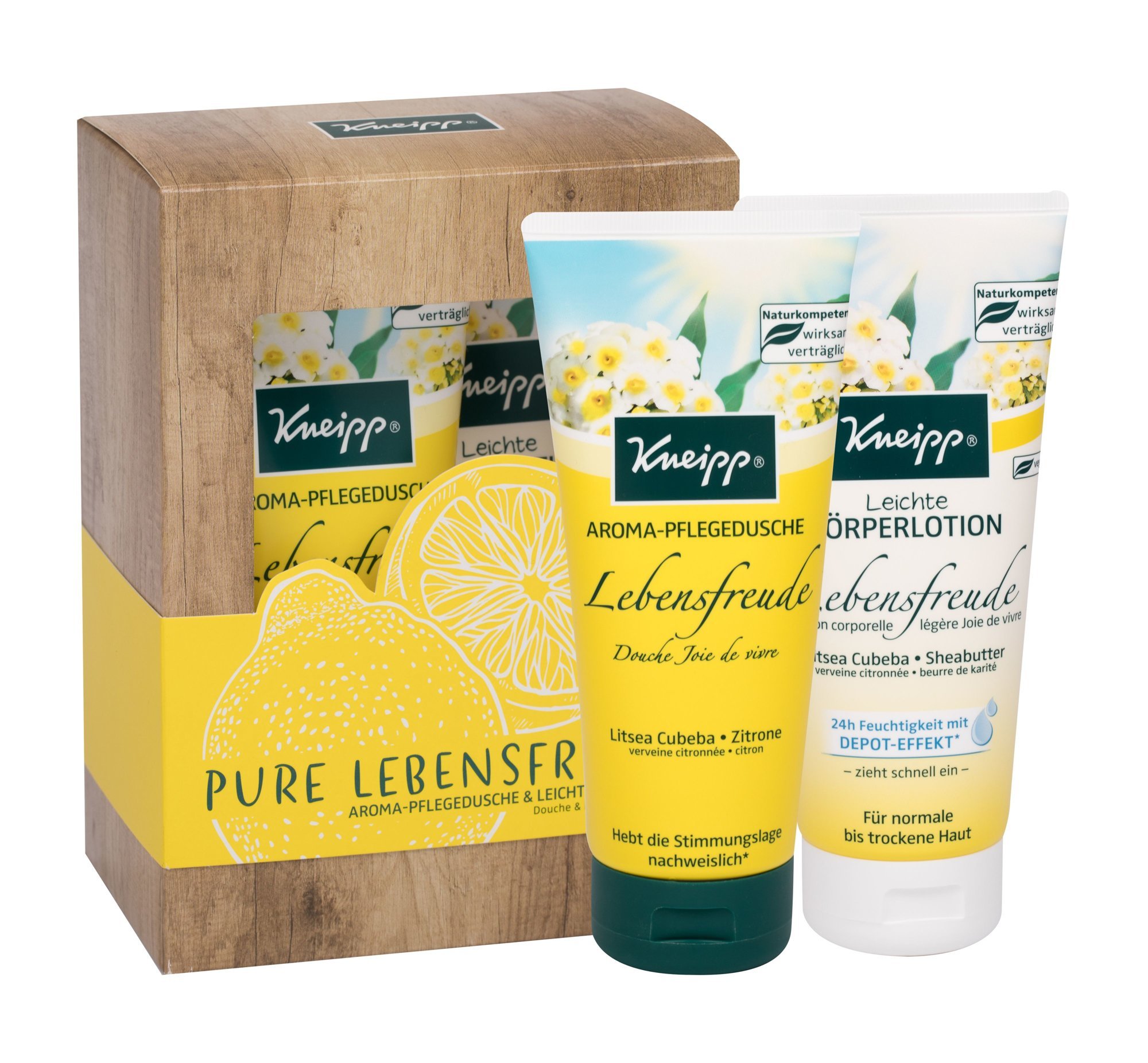 Sada tělové kosmetiky **Enjoy Life** německé značky **Kneipp** se vyznačuje obsahem** esenciálních olejů z vavřínu kubébovitého a citronu**. Jejich osvěžující vůně je výtečná po ranním probuzení, kdy vás nastartuje a dodá energii do nového dne. ### Co v sadě můžete najít? Sprchový gel **Kneipp Body Wash Enjoy Life May Chang & Lemon 200 ml.** **Účinky:** * složení s vyváženým pH, * neobsahuje mýdlo, * jemně čistí pokožku, * hydratuje a zjemňuje, * zamezuje přílišnému vysoušení, * osvěžující citrusová vůně plodů vavřínu kubébovitého a citronu. **Použití**: Aplikujte na mokrou pokožku, krouživými pohyby napěňte a poté opláchněte. Tělové mléko **Kneipp Body Milk Enjoy Life May Chang & Lemon 200 ml.** **Účinky:** * díky bambuckému máslu hydratuje a zjemňuje, * zamezuje přílišnému vysoušení, * udržuje pokožku hebkou a pružnou, * osvěžující citrusová vůně plodů vavřínu kubébovitého a citronu. **Použití:** Aplikujte na čistou suchou pokožku těla. Krouživými pohyby rozetřete.