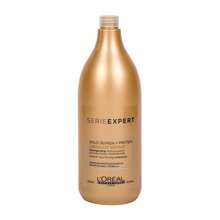 Šampon **L´Oréal Professionnel Série Expert Absolut Repair Gold Quinoa + Protein Instant Resurfacing** s pšeničnými proteiny a výtažkem z gold quinoa poskytuje velmi poškozeným poškozeným vlasům výživu, hydrataci a účinně je regeneruje. ### Jaké vlastnosti má šampon Gold Quinoa + Protein? * regeneruje velmi poškozené vlasy, * poskytuje jim lesk a záři, * vlasy jsou hladké, pružné a snadno se rozčesávají, * dodává vlasům jemnou vůni. ### Jak správně tento šampon používat? Naneste na mokré vlasy a krouživými pohyby napěňte. Poté opláchněte.