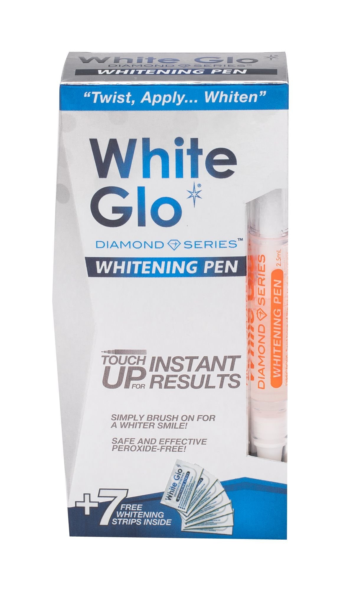 Trápí vás nevzhledné skvrny na zubech, ale pití černého čaje, kávy nebo červeného vína se nechcete vzdát? Nemusíte! Pomocí sady **White Glo Diamond Series** se můžete tmavých skvrn zbavit, rozzářit svůj úsměv krásně bílými zuby a přitom si užívat svých oblíbených nápojů. **Co tato sada obsahuje? ### Bělicí zubní pero White Glo Whitening Pen 2,5 ml. Tento výrobek byl vyvinut ve spolupráci se zubními lékaři. Neobsahuje peroxid, ani jiné podobné drastické látky. Pouze testované a stomatologicky schválené ingredience, které jsou šetrné jak k zubní sklovině, tak k dásním. **Použití je opravdu snadné!** Gel z pera naneste na zuby a nechte 30 minut působit. Během bělení nejzete ani nepijte. Po uplynutí doby si zuby vyčistěte zubní pastou White Glo Professional Choice. Používejte 2 - 3x denně. ### Bělicí zubní pásky White Glo Whitening Strips 7 ks. Těchto 7 párů pásků (7 ks pro horní zuby a 7 ks pro spodní zuby) intenzivně, ale bezpečně odstraňuje skvrny od nápojů a zažloutlé zuby od kouření. **Jak bělicí pásky správně používat?** Každý den nalepte 1 pásek na horní zuby a 1 pásek na spodní zuby. Nechte 30 minut působit a poté odstraňte. Dvě hodiny od aplikace nepijte kávu, čaj, červené víno a nekuřte.