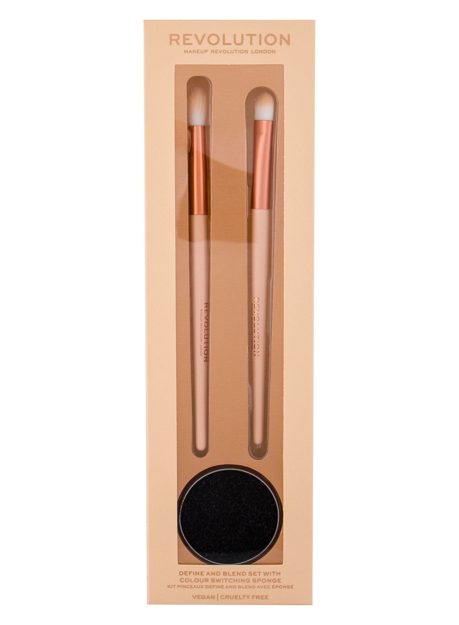 Makeup Revolution London Define & Blend plochý štětec na oční stíny 1 ks + štětec na blending 1 ks + čistič na štětce 1 ks
