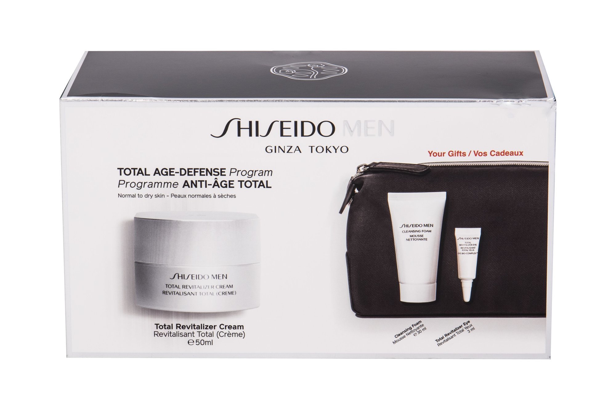 Shiseido MEN denní pleťová péče Total Revitalizer Cream 50 ml + péče o oční okolí Total Revitalizer Eye Cream 3 ml + čisticí pěna 30 ml + kosmetická taška