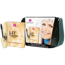 **Dermacol Mega Lashes Mascara Kit 7034** kazeta pro objem řas. **Složení kazety**: **Mega Lashes Mascara Black 13ml - Řasenka pro objem a délku řas** Řasenka Dermacol Mega Lashes Mascara dodá řasám oslnivý objem a nekonečnou délku. Nádherně řasy natočí a rozčeše. Krémová textura obalí každou řasu a dodá jí plnost. Unikátní kartáček perfektně oddělí a nadzvedne řasy. Vaše řasy získají intenzivní barvu a jedinečný objem. Výsledkem budou nádherné řasy bez slepení a žmolků. **Poznámka**: _Vyobrazený odstín může být spíše orientační, záleží na nastavení barev Vašeho monitoru._ **Hyaluron Therapy 3D Eye Masc 6x6g - Osvěžující hydratační maska na oči** Mska perfektně rozjasní oblast očí. Gelová chladivá textura a kyselina hyaluronová dodá jemné pokožce extra dávku hydratace a osvěžení. Vyhlazuje jemné linky pod očima a zabraňuje jejich vzniku. Zvyšuje elasticitu pokožky očního okolí. Okamžitě odstraňuje otoky a tmavé kruhy. Intenzivně regeneruje a zklidňuje. **Použití**: Aplikujte na čistou pleť jemným přitlačením pod oči. Nechte působit 15-20 minut. Vyhněte se kontaktu se sliznicí oka. Potom masku sejměte a oční okolí opláchněte a následně ošetřete očním krémem HYALURON THERAPY 3D EYE & LIP. Masku na oči aplikujte 1-2x týdně. **Bag**