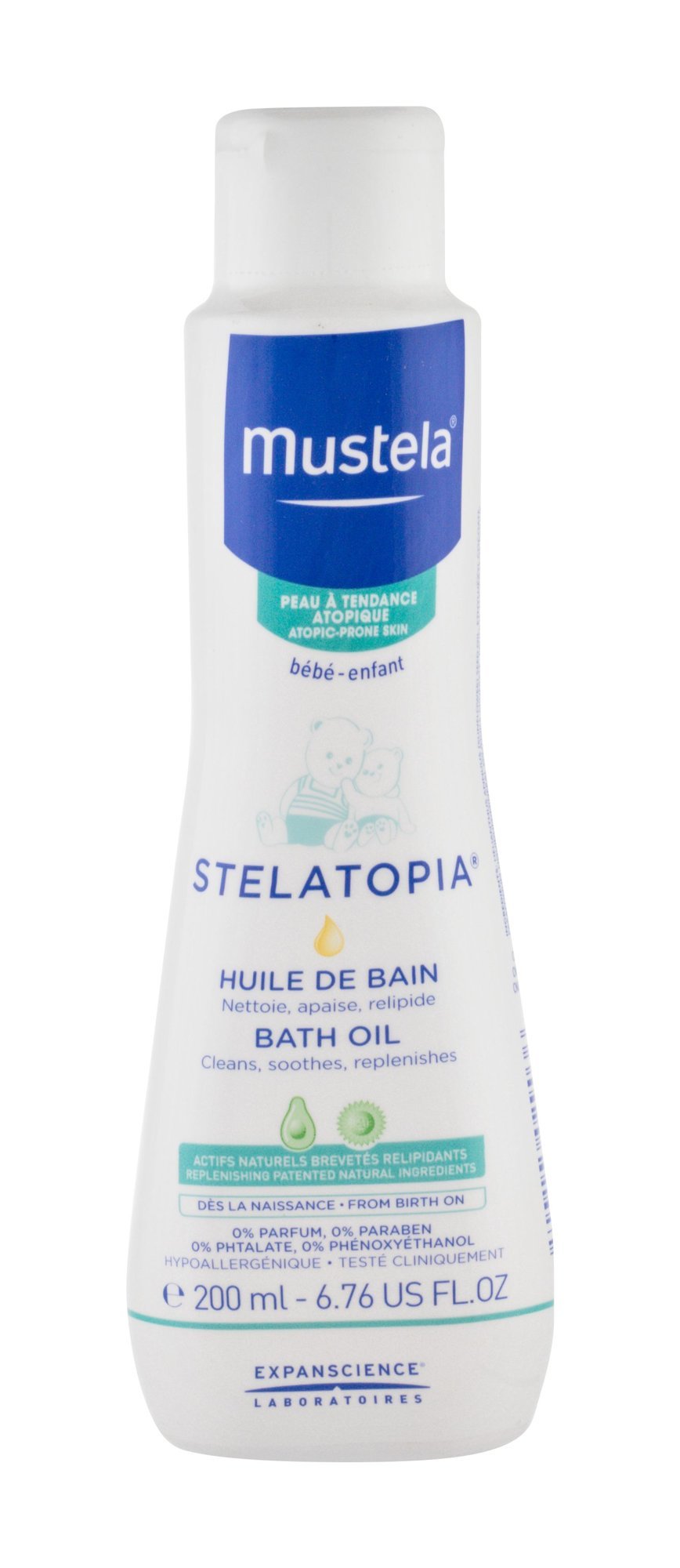 Dopřejte svému miminku zklidňující a pečující lázeň s **koupelovým olejem Mustela Bébé Stelatopia Bath Oil.** ### Proč používat právě koupelový olej Mustela Bébé Stelatopia? * jemně čistí, zklidňuje, zvláčňuje a vyživuje dětskou pokožku, * ideální pro atopickou i citlivou pokožku hned od narození, * nenarušuje přirozenou ochrannou bariéru, * podporuje obranyschopnost pleti, * bez parabenů a ftalátů. ### Správné použití koupelového oleje Bath Oil: Přidejte menší množství oleje do napuštěné vody.