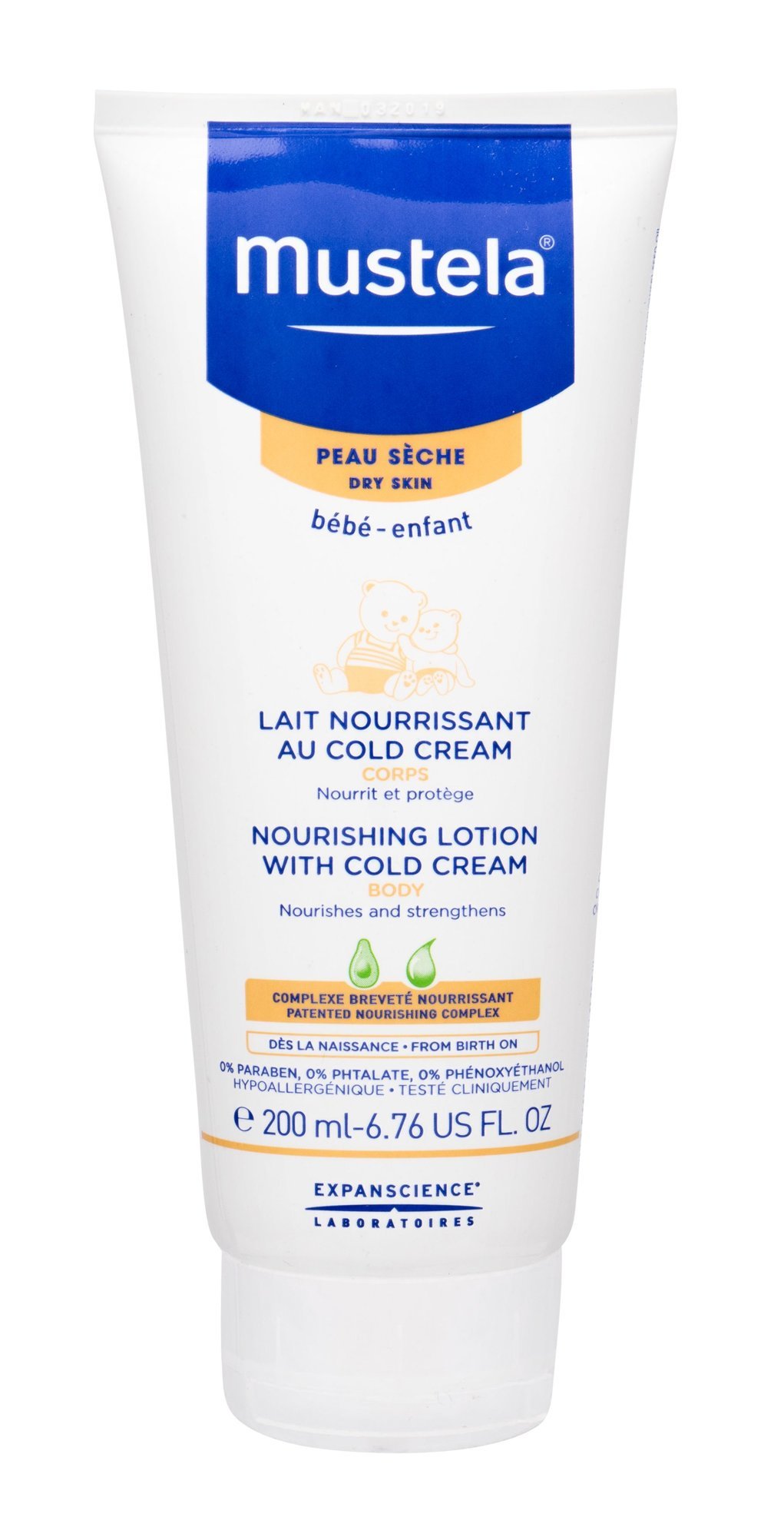 Dopřejte svému miminku tu nejlepší péči s francouzskou značkou **Mustela**. **Vyživující tělové mléko Nourishing Lotion with Cold Cream **perfektně vyživí suchou pokožku a lze jej používat již od narození. ### Jedinečné účinky dětského tělového mléka Mustela: * okamžitě a dlouhodobě vyživuje a hydratuje pokožku miminka, * obnovuje přirozenou obrannou bariéru, * chrání pokožku před vnějšími vlivy, * zachovává rovnováhu dětské pokožky, * bohatá krémová textura, * jemná parfemace, * rychle se vstřebává, * obsahuje 95 % přírodních složek. ### Jak používat tělové mléko pro děti Nourishing Lotion with Cold Cream? Každé ráno a večer nanášejte mléko na pokožku miminka.