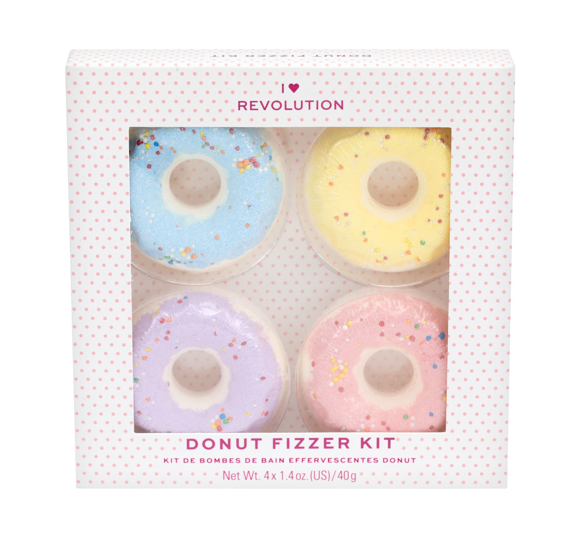 Dopřejte si zábavnou koupel se sadou šumivých bomb **Donut Fizzer Kit od I♥Revolution**, kterou si oblíbíte vy i vaše děti. ### Jak funguje bomba do koupele? Ve vodě se rozpouští a uvolňuje příjemnou vůni. ### Co je součástí setu? Set obsahuje 4 koupelové bomby ve tvaru koblihy s vůní borůvek, levandule, banánů a jahod. ### Jak používat koupelové bomby I♥Revolution? Nechte bombu rozpustit ve vodě během koupele.