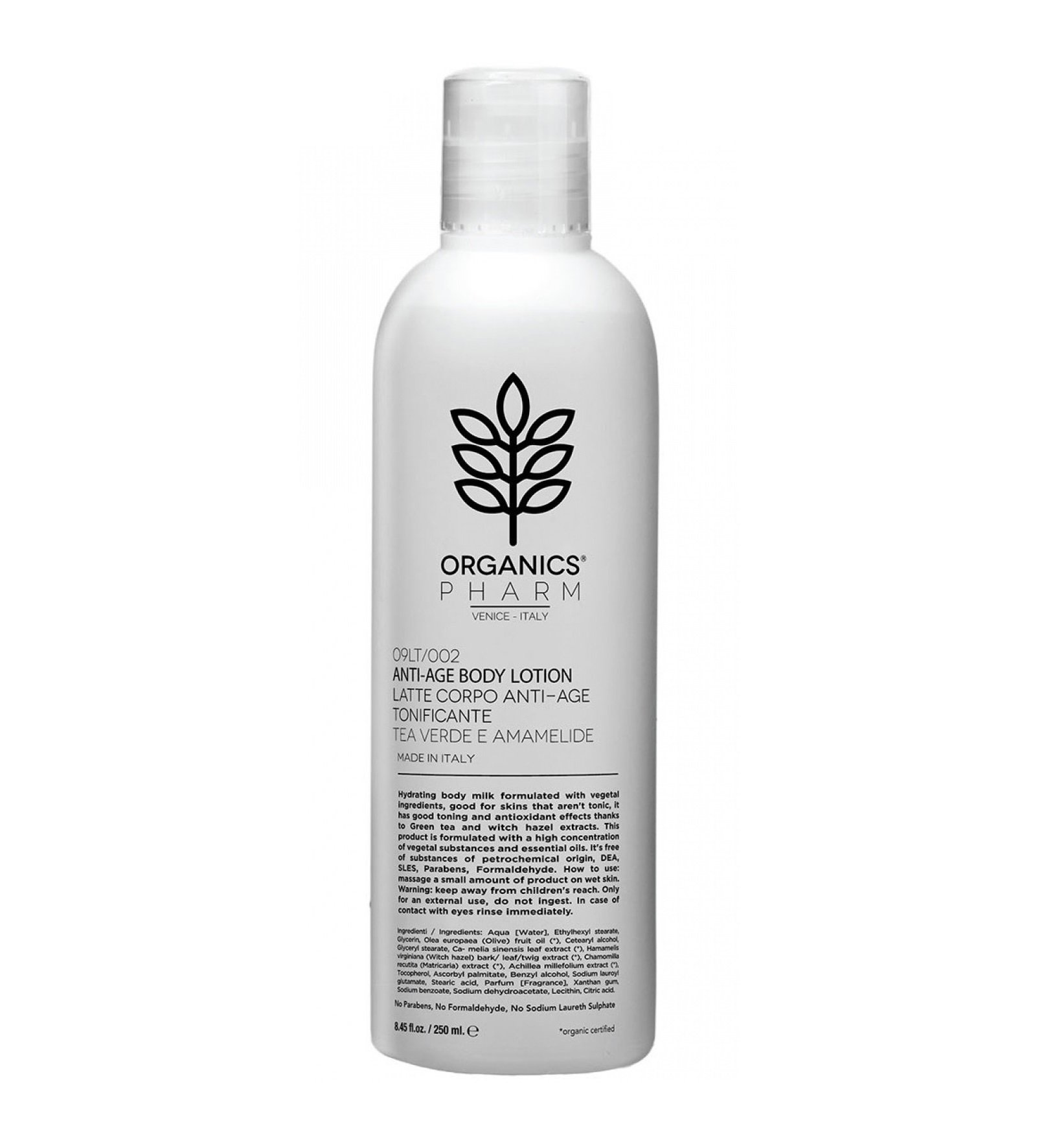 Hydratační tělové mléko ORGANICS PHARM Anti-Age Body Lotion na rostlinné bázi na povadlou pokožku bez tonusu. Díky obsahu výtažků ze zeleného čaje a vilínu virginského má výborné zpevňující a antioxidační účinky. číst celé