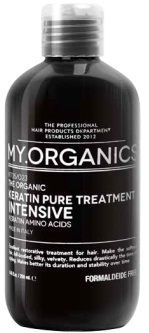Produkty z řady MY.ORGANICS Keratin díky rekonstrukčním schopnostem keratinu dodávají zdraví a zářivý lesk poškozeným vlasům, které byly vystaveny působení chemických produktů. Při použití kompletní řady dosáhneme hloubkové očisty vlasové pokožky a tím podpoříme a urychlíme regeneraci. Intenzivní péče s keratinem a aminokyselinami MY.ORGANICS The Organic Keratin Pure Treatment Intensive Keratin Amino Acids pro rekonstrukci vlasů. Dodává vlasům hebkost, objem, hedvábnou jemnost, hladkost a sametovost. Usnadňuje domácí styling, výrazně zkracuje dobu potřebnou pro dokonalou foukanou a přispívá k prodloužení trvanlivosti účinku keratinové kúry.