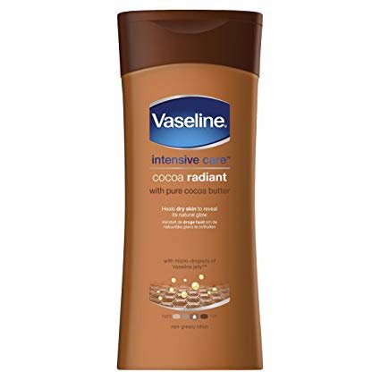 Tělové mléko Vaseline Intensive Care Cocoa Radiant. Tělové mléko Vaseline Intensive Care Cocoa Radiant pro hloubkovou hydrataci suché pokožky. Tělové mléko s kakaovým máslem pokožku optimálně hydratuje a zabraňuje jejímu vysušování. Jemné složení se ihned vstřebává a nezanechává na pokožce mastný film. Po použití bude Vaše pokožka jemná, hydratovaná a svěží. Použití: Aplikujte na suchou a čistou pokožku.
