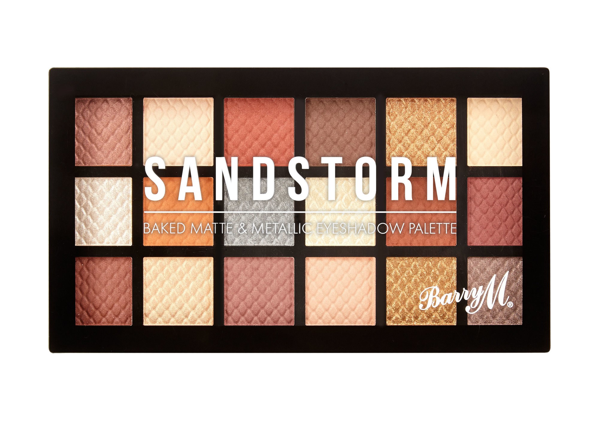 Paletka Barry M Crown Sandstorm obsahuje 18 matných a metalických očních stínů s hedvábnou texturou a vysokou pigmentací.