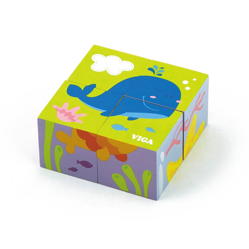Dřevěné puzzle kostky pro nejmenší Viga Velryba
