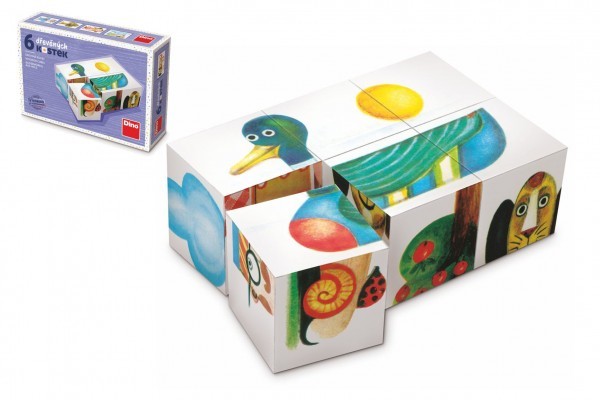 Pořiďte dětem nadčasovou variantu 3D puzzle. Tradiční dřevěné kostky děti s radostí použijí nejen jako skládačku, ale i jako stavebnici. Kachnu, psa, strom a jiné obrázky budou skládat z celkem 6 krychliček. Při hraní malí šikulové naplno zapojí fantazii, procvičí si motorické schopnosti a probudí svou kreativitu. Skládat mohou jak podle předloh, tak po paměti. Dřevěné kostky se budou líbit všem dětem od 3 let. Kostky se vyrábí z českého smrkového dřeva v naší ryze české továrně Dino Topa, která svou historii píše už od 50. let. Kvalitní přírodní materiál přežije celé generace a je zdravotně nezávadný. Rozměry balení 13 x 9 x 4 cm. Vhodné pro děti od 3 let.