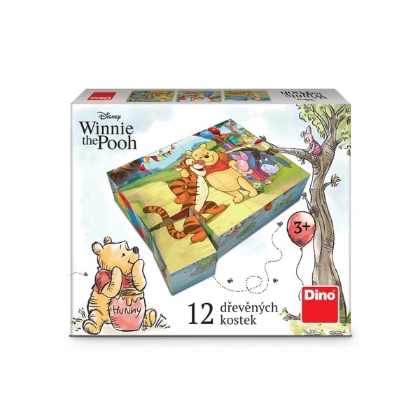 Dino Dřevěné obrázkové kostky Medvídek Pú 12 ks