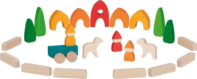 Klocki dla dzieci Moja mała farma Goki powstały w zgodzie z naturą tzn. w produkcji postawiono na klasyczne, trwałe drewno.