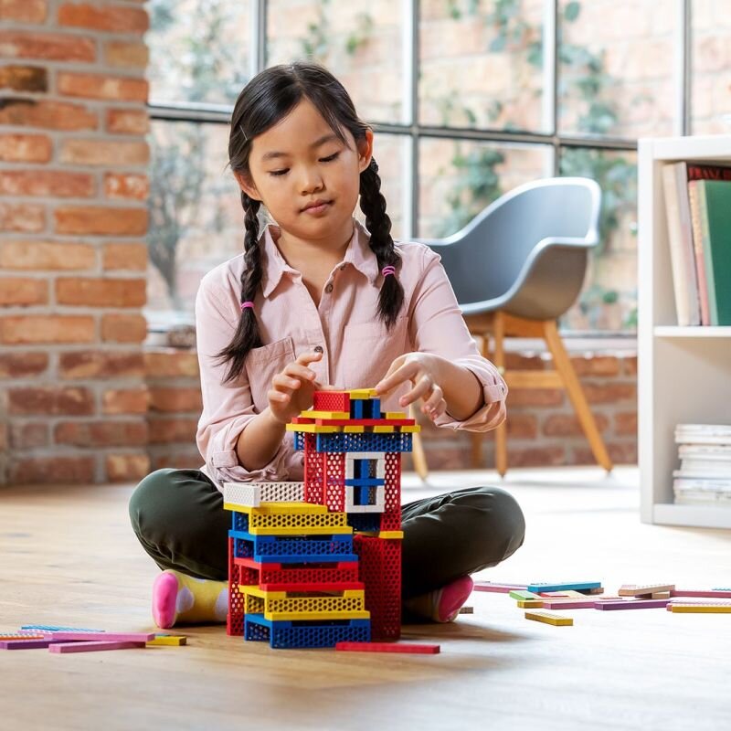 Unikalna struktura plastra miodu sprawia, że klocki są lżejsze i przepuszczają światło. Daje nieograniczone możliwości tworzenia przestrzennych konstrukcji, a także zabaw z kolorami i światłem, sprawia wielką radość podczas używania ich do puszczania baniek.