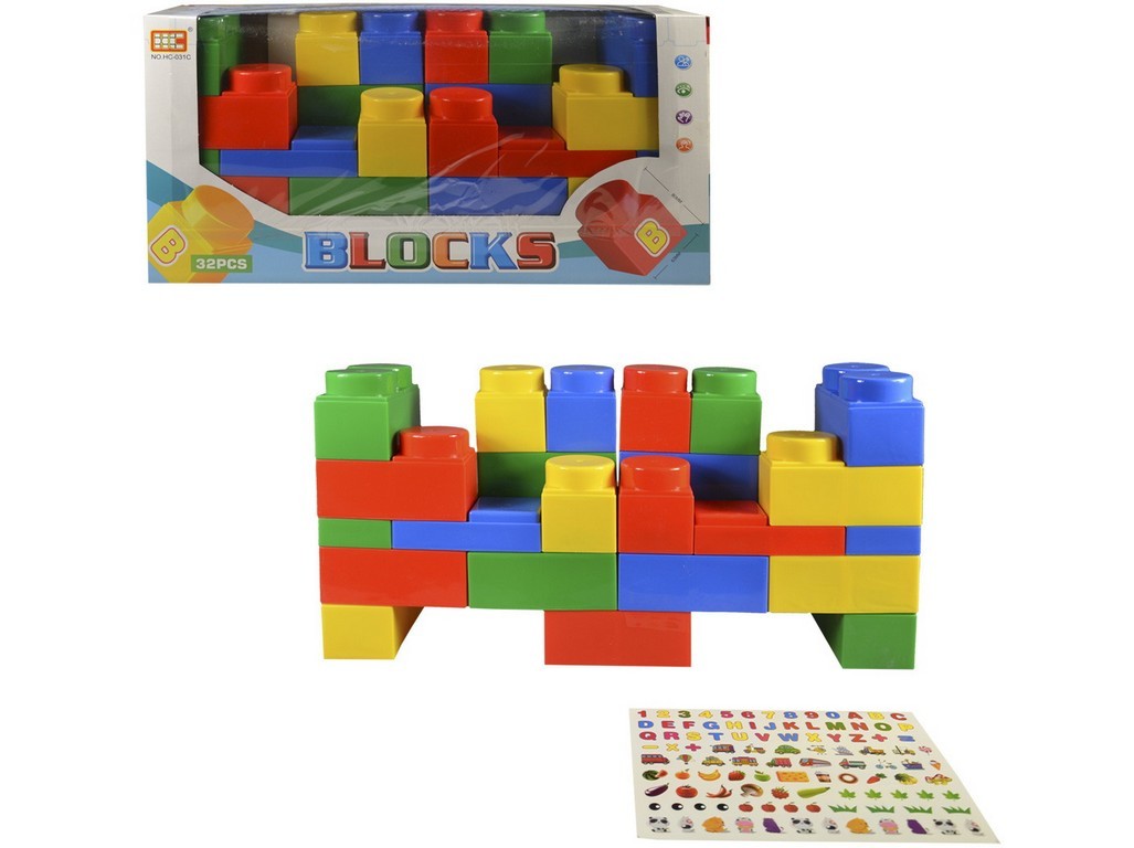 Materiál hračky je plast. Balení obsahuje kostky a arch s nálepkami, se kterými si kostky můžete dotvořit podle sebe.