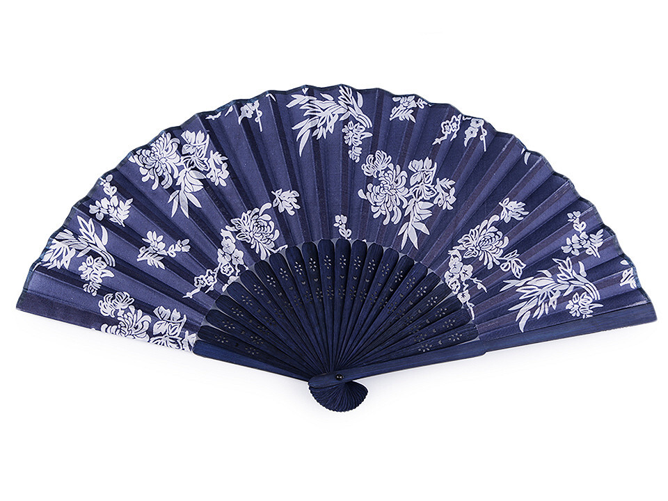 Tento vějíř je vyroben s důrazem na detail - má dřevěnou rukojeť s vyřezávanými ornamenty, která je lehká a příjemná do ruky. Textilní plocha vějíře zdobí různé květinové vzory, které mohou být při dodání náhodné, což znamená, že každý kus je unikátní a přinese vám osobitý doplněk.