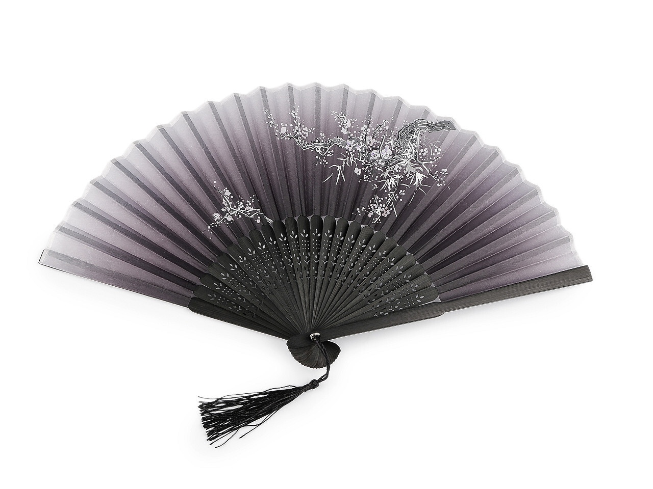 Vějíř textilní s metalickými detaily - 1 ks - 8 černá stříbrná