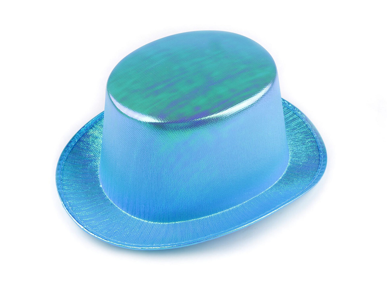Karnevalový klobouk / cylindr metalický - 1 ks - 1 modrá azurová AB