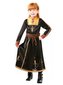 Kostým Anna je digitálně potištěný s výraznými folklórními motivy, které dokonale vystihují kouzlo této oblíbené pohádky. Součástí jsou dlouhé přiléhavé rukávy s tištěným lemováním copánky, falešná blůza s našitou broží u výstřihu a třpytivá sukně s kovově lesklým lemováním. Luxusní odnímatelný dvoubarevný plášť z veluru a 3D knoflíky umocňují dojem pravé princezny. Pás se zavazuje na bocích, což umožňuje pohodlné přizpůsobení velikosti.