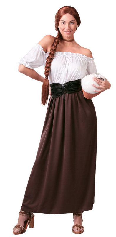 Kostým vesničanky, který se skládá z šatů a opasku, je jednoduchý, ale praktický a pohodlný. Šaty jsou vyrobeny ze 100% polyesteru a mají volné řezy, aby poskytovaly dostatek pohodlí pro denní práci.