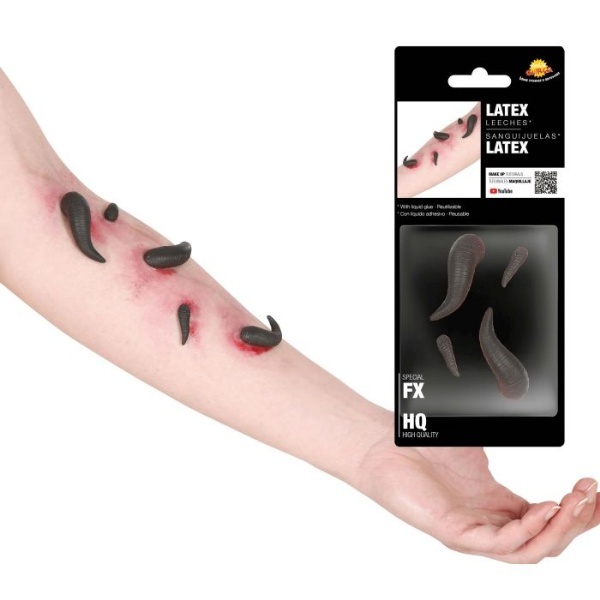 Umělé pijavice - Halloweenský doplněk ke kostýmu. Nalepovací pijavice, jako děsivý doplněk k Halloweenskému kostýmu. Vhodná na jakoukoliv tematickou party. Hodí se jako doplněk ke kostýmu na halloweenskou party krvavou i hororovou party nebo karneval. Balení obsahuje také latexové lepidlo....