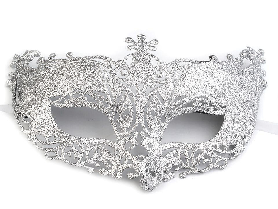 Karnevalová maska - škraboška s glitry - 1 ks - 1 stříbrná