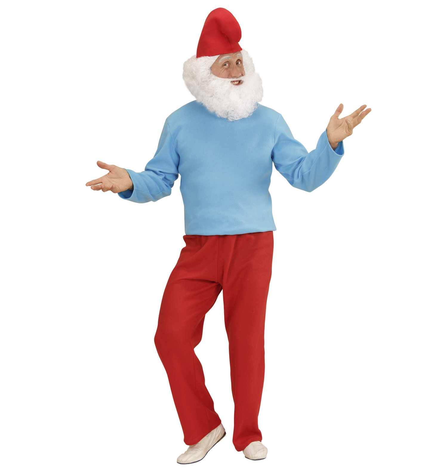 Kostým obsahuje: modré triko, červené kalhoty a červenou čepici