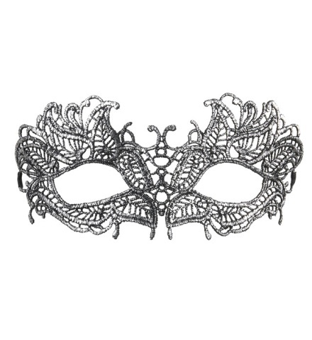 Ozdobná jemně vyplétaná karnevalová škraboška v barvě antického stříbra, vázání na stužku.