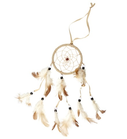 Indiánský lapač snů, s korálky a peříčky se stužkou na pověšení.