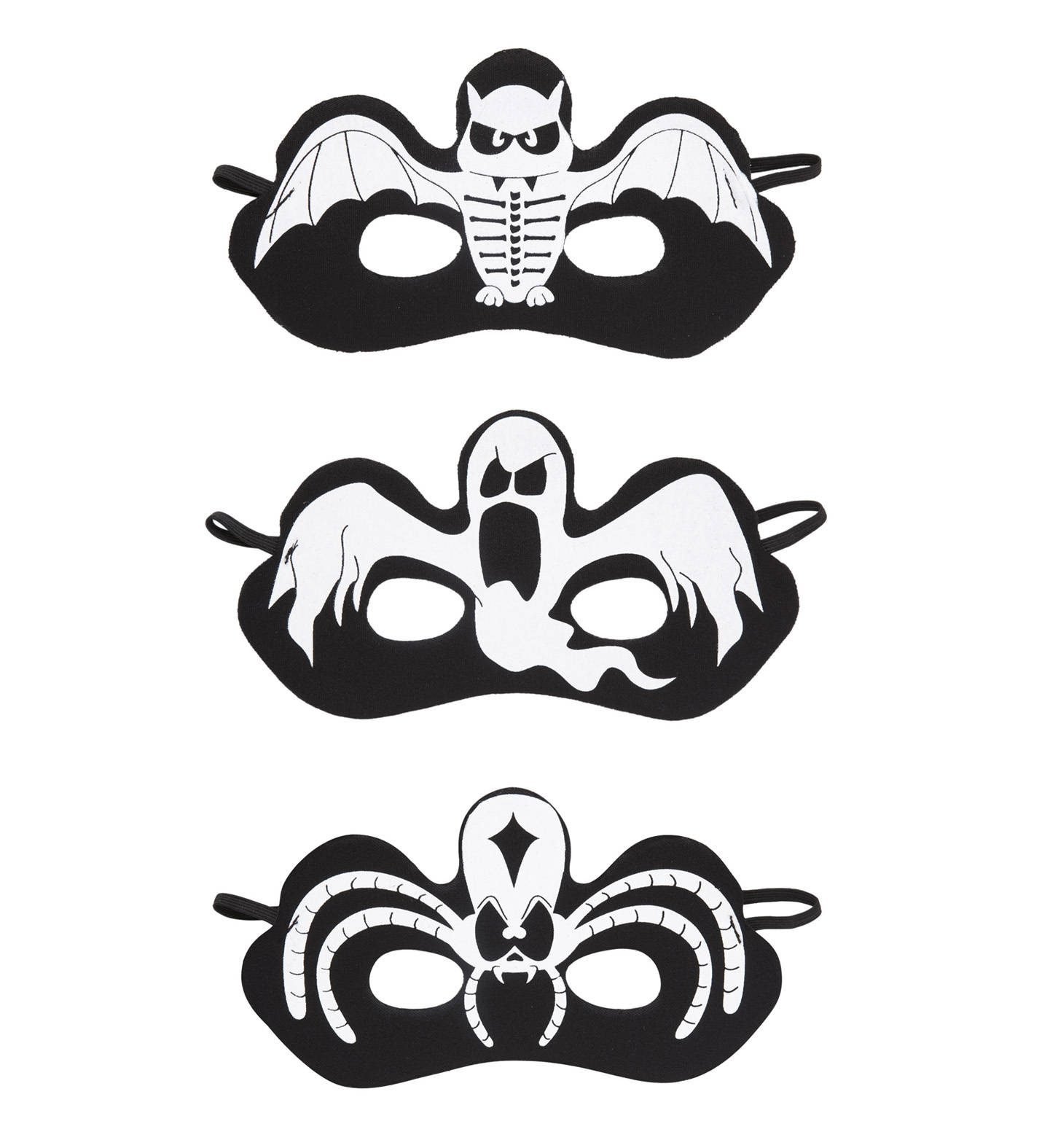 Škraboška karnevalová, halloweenská, motiv duch, nebo pavouk a netopýr.