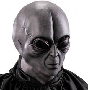 Tmavě zbarvená mimozemská maska s velkýma očima. Vhodné na karnevalové a halloweenské kostýmy.