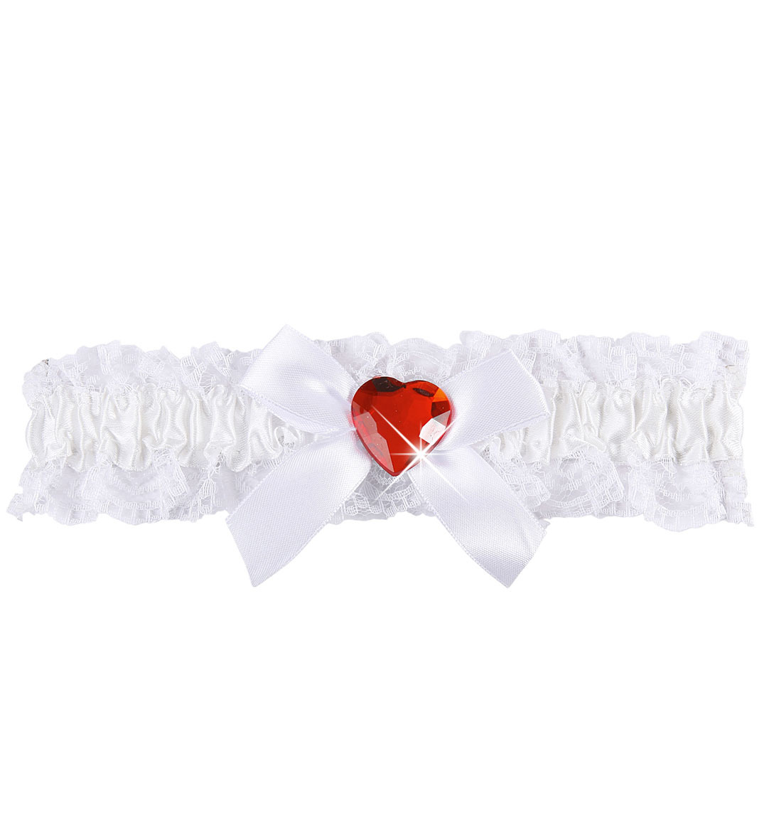 Vyrobený z kvalitního 100% polyesteru, je příjemný na nošení, lehký a dostatečně elastický, aby se pohodlně přizpůsobil tvaru nohy. Bílá barva symbolizuje čistotu a nevinnost, zatímco design se srdíčkem dodává podvazku jemný romantický nádech.