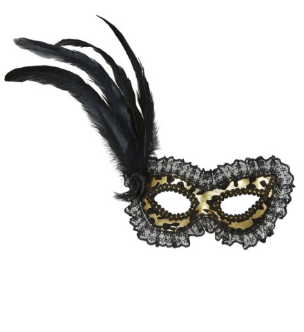Škraboška plesová s peřím a s krajkou a černou růžičkou. Uchycení na gumičku..